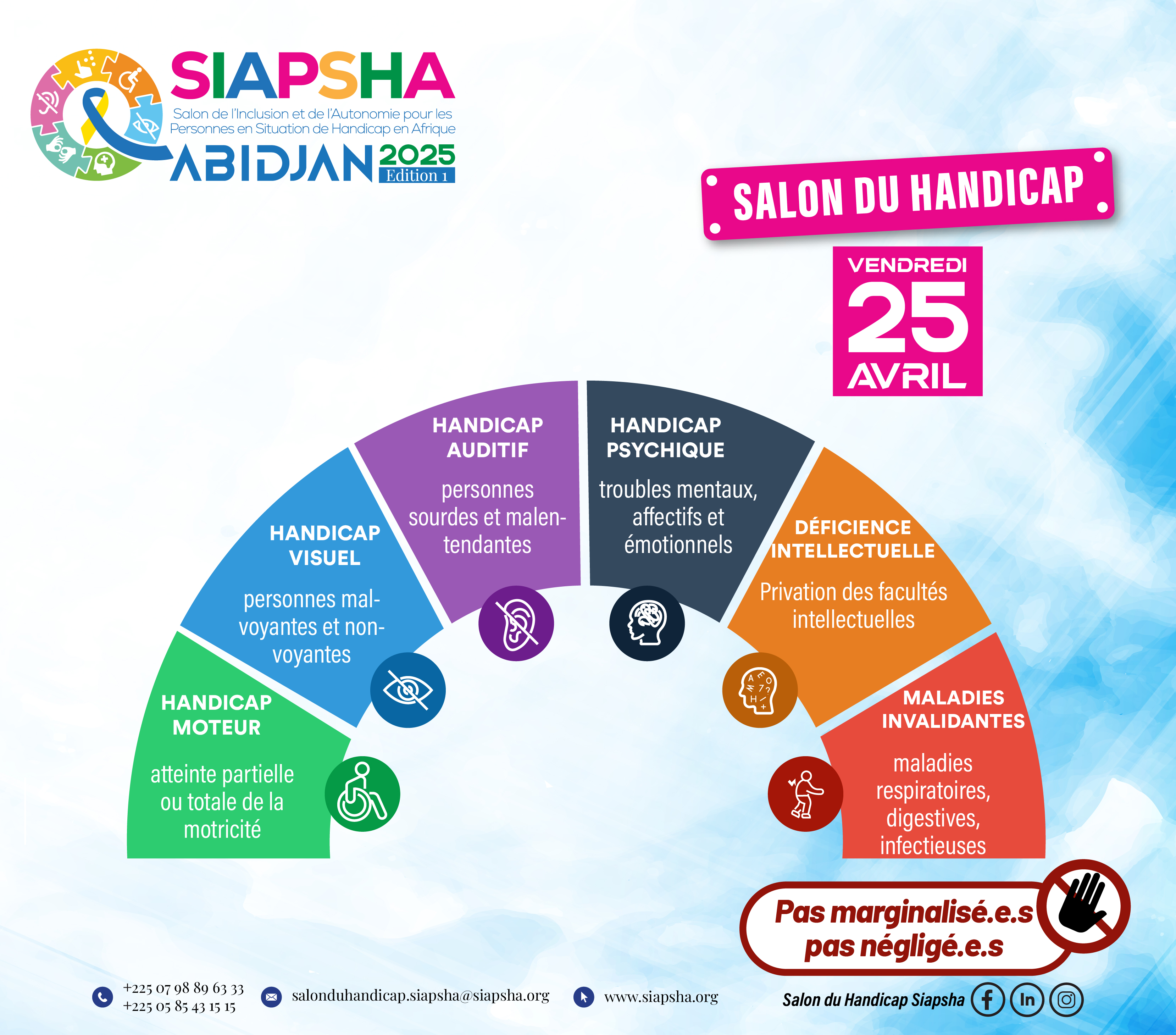 le Salon de l’Inclusion et de l’Autonomie pour les Personnes en Situation de Handicap en Afrique (SIAPSHA) est né d’une volonté de rassembler les acteurs clés du secteur – institutions, entreprises, associations, experts et familles – pour mettre en lumière des solutions innovantes et durables.